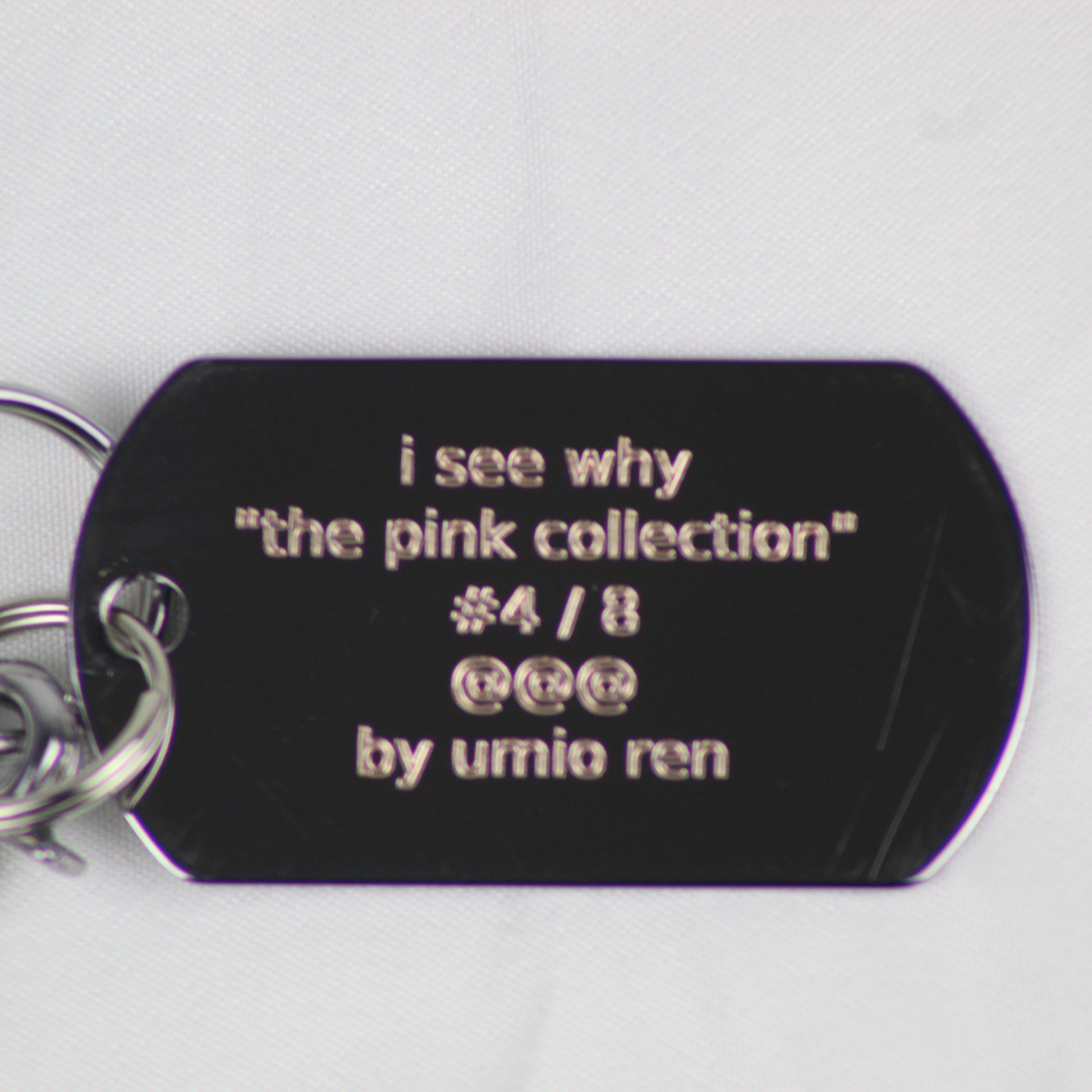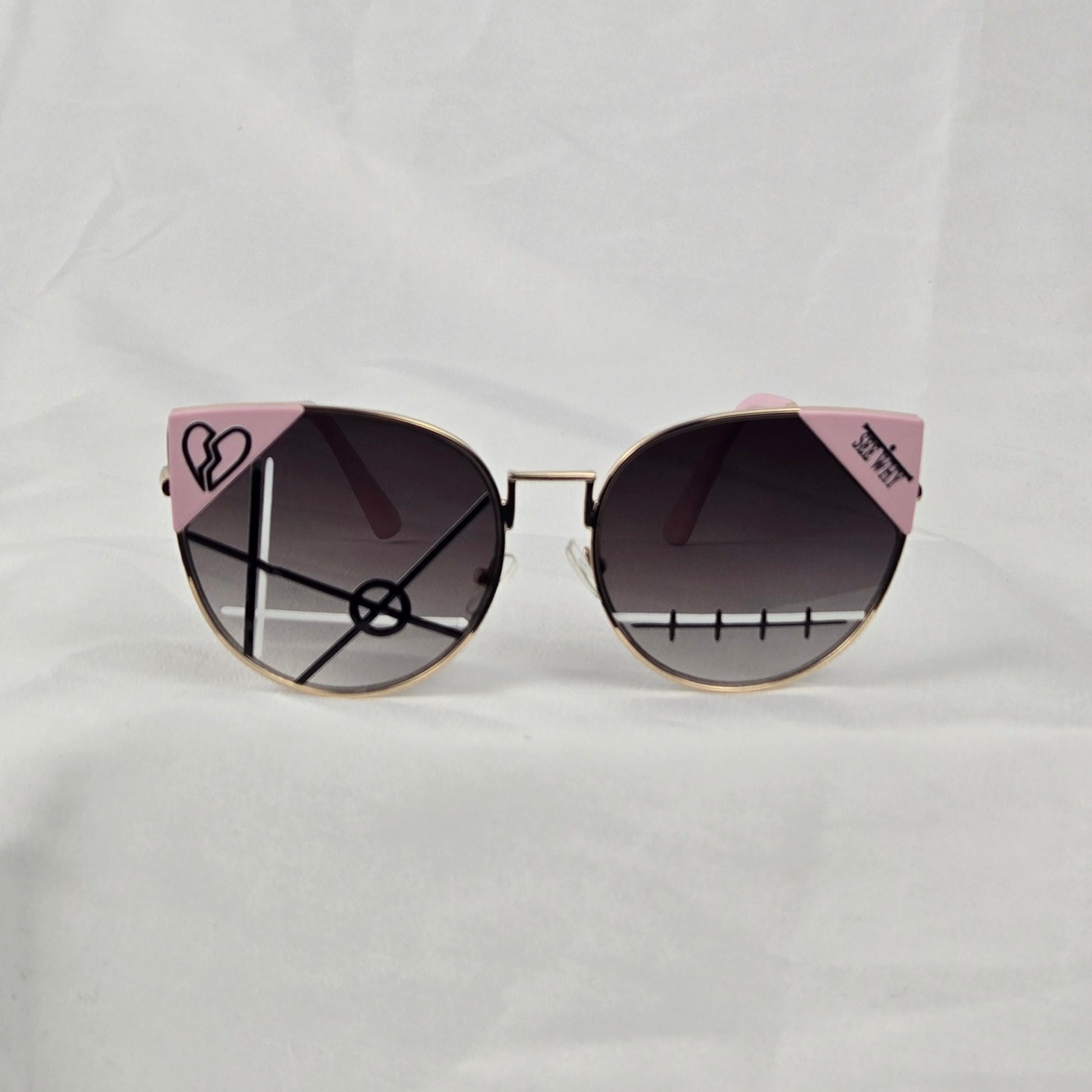 These round-frame glasses feature custom pink enamel corners, precision-detailed lens graphics, and metal rim construction that feels both delicate and commanding.
